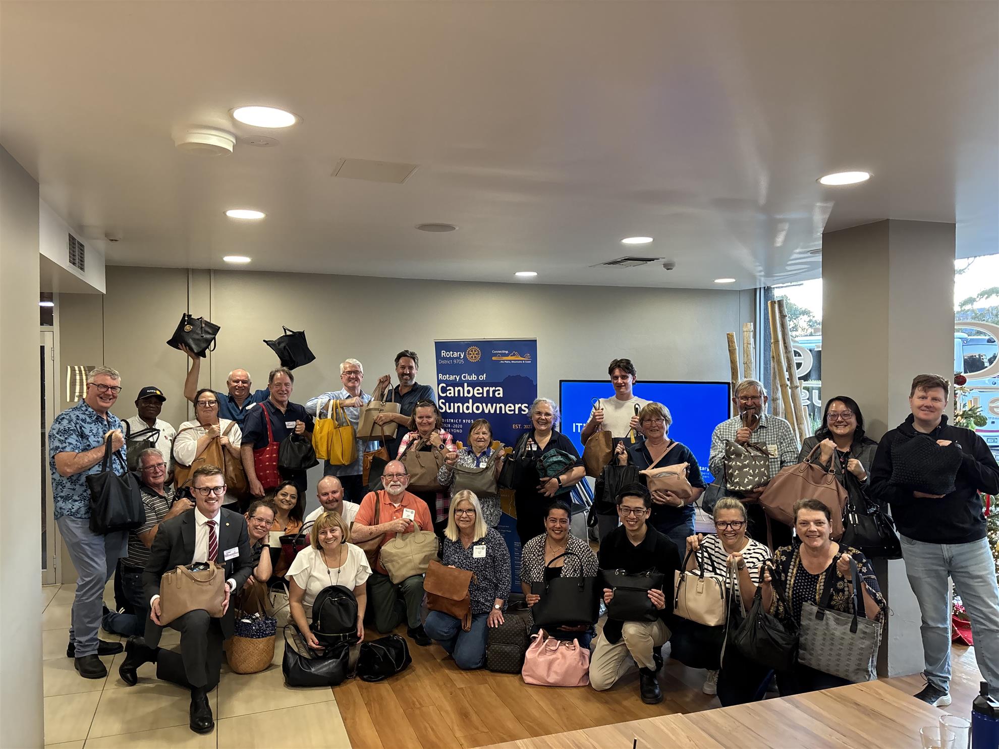 Clubs unite to support women and teens in need![]() At our meeting on 18 November, we joined with the Rotary Club of Tuggeranong for a powerful hands-on service project supporting women and teen girls escaping violence. Together, we packed more than 50 preloved handbags with essential items like shampoo, toothpaste, deodorant, brushes and hair ties. They are small everyday things that can make a big difference for someone rebuilding their life. These bags have now been donated to Toora Women and Community Services #, where they’ll be distributed to women and girls doing it tough in the lead-up to Christmas. When Rotarians come together, we can reach further and help more people who need it most. |